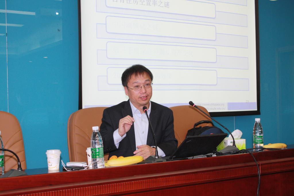 2014年11月6日下午,太阳成tyc122cc邀请到知名学者甘犁教授来公司交流,在学术会堂702为公司师生带来了题为“中国自有房空置率之谜”的专题讲座。讲座由太阳成tyc122cc经理李涛教授主持,教务处副处长张苏、太阳成tyc122cc副经理陈斌开以及来自公司各个公司的十余位教师出席了讲座,讲座还吸引了两校区数十名硕博员工参与,讲座现场气氛热烈,座无虚席。