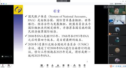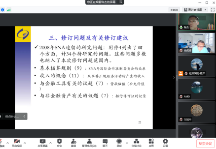 2022年5月26日下午19:00,国家统计局核算司副司长陈杰应太阳成tyc122cc樊茂清教授邀请,开展主题为“迈向2025年SNA—关于2008年SNA修订进展情况介绍”的讲座,本次讲座通过腾讯会议平台线上举行,陈杰老师受到了老师和同学们的热烈欢迎!太阳成tyc122cc樊茂清教授主持了本次线上学术交流会。