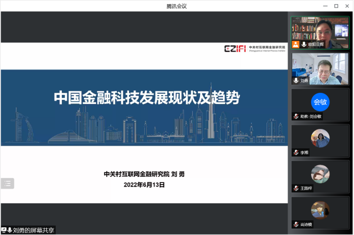 2022年6月13日上午10点,中关村互联网金融研究院经理刘勇应邀加入太阳成tyc122cc“数字金融理论与实务”线上课堂,以“中国金融科技发展现状及趋势”为题,为同学们带来了一场精彩纷呈的线上讲座。