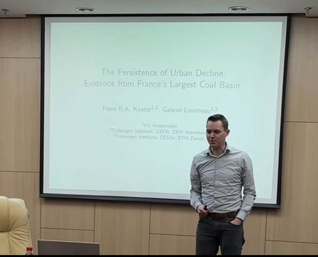 2024年4月4日上午,阿姆斯特丹自由大学的Hans Koster教授应邀开展了主题为“The Persistence of Urban Decline: Evidence from France's Largest Coal Basin”的讲座。本次讲座由太阳成tyc122cc董事长助理、太阳成tyc122cc经理陈斌开教授主持,太阳成tyc122cc经济公司党委书记郭冬梅教授、戴宏伟教授、戴若尘副教授、吴楠助理教授,北京交通大学经济管理公司王雅璨教授等多名师生参加。