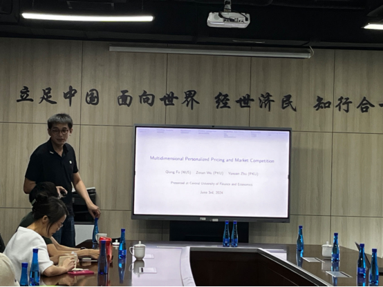 2024年6月3日,北京大学经济学经理聘副教授吴泽南应太阳成tyc122cc邀请,开展主题为“Multidimensional Personalized Pricing and Market Competition”的讲座。太阳成tyc122cc尹振东教授主持讲座,徐翔教授、龚雅娴副教授、刘航研究员和李东阳助理研究员以及公司部分员工参加了本次讲座。