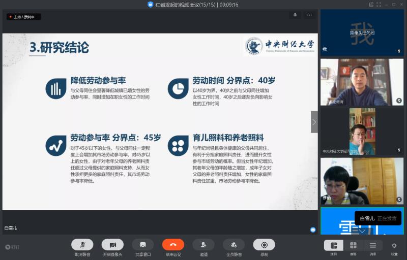 按照线上答辩会流程,会议分为邀请参会人进入线上会议室,答辩委员会主席介绍答辩委员会成员和答辩规则,学位论文答辩人验明身份后陈述、委员提问、答辩人回答问题,答辩人和旁听者退出会场,答辩评议及投票表决,答辩委员会决议,邀请答辩人再次入场并宣布决议等七个环节。周莹、王燕芬、刘健升同学顺利完成了论文陈述,并逐一对答辩委员会委员提出的问题进行了回答,答辩委员会委员对答辩过程与结果进行了认真的评议并通过电子选票进行表决。最后,答辩委员会主席分别宣布答辩委员会全票通过周莹、王燕芬和刘健升同学的学位论文答辩,并全票通过建议授予经济学博士学位。