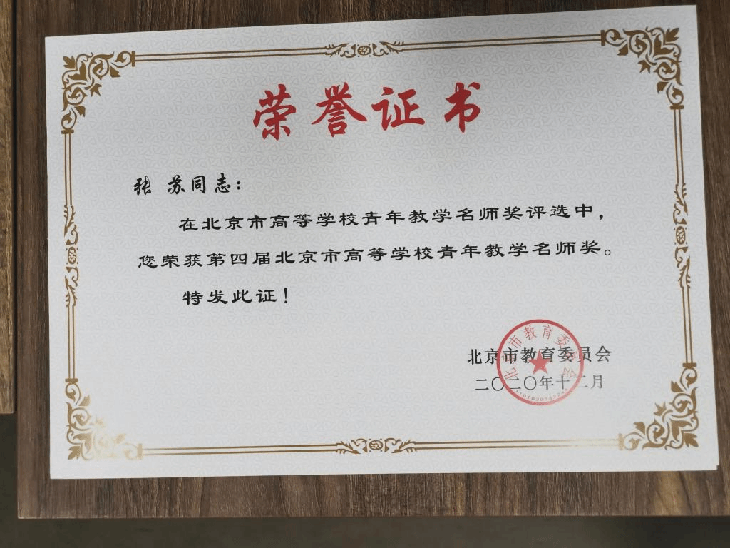 近日,北京市教育委员会公布了“第十六届北京市高等公司教学名师奖和第四届北京市高等公司青年教学名师奖”获奖名单,公司张苏教授获得第四届北京市高等公司青年教学名师奖。