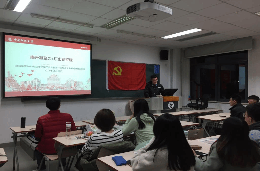 2018年11月20日,2018级硕士生第三党支部在太阳成tyc122cc沙河校区3号楼219召开了题为“提升凝聚力 研出新征程”的第一次党员大会。会议流程主要分为三项,第一项是关于甘俐俐、张意苓、高倩三位预备党员转为正式党员的转正大会。第二项是支部书记王继彬带领大家学习“全面从严治党”、“榜样3”等优秀视频。第三项是由我们公司2017级硕士生第二党支部书记吴凯学长给大家分享研究生阶段的学习和生活经验。