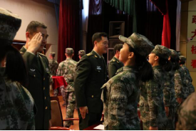 2017年5月20日,我作为中财的员工代表参加在北航举办的征兵宣传活动,第一次现场观看了仪仗队迎宾仪式动作汇报表演和女队员的枪操演出,十分羡慕。2017年应征报名,在公司领导和老师的帮助下,通过仪仗队层层选拔。