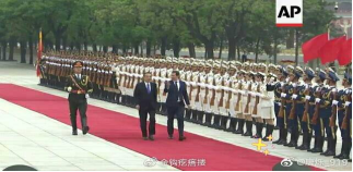 人民大会堂东门外广场,执行总统级外事任务,出现在新闻联播中,唐烁为右二