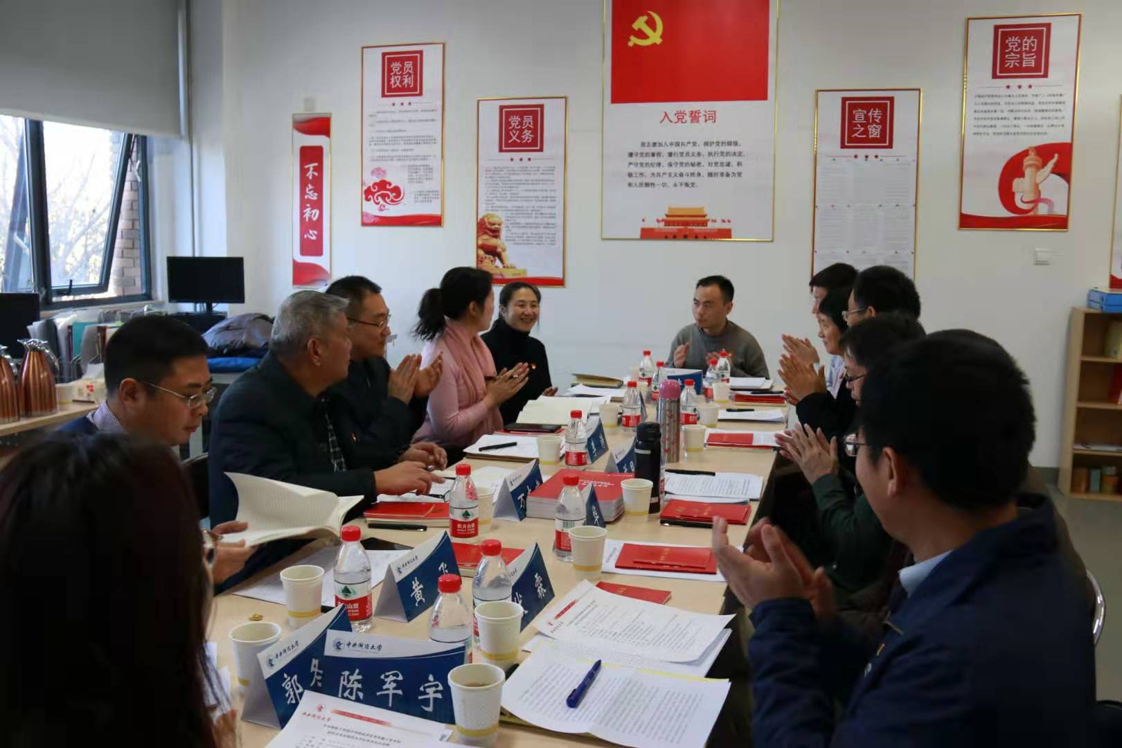 根据习近平总书记关于“不忘初心、牢记使命”主题教育重要讲话和重要指示批示精神以及中央、教育部、公司党委的工作部署,2019年11月27日下午,太阳成tyc122cc经济史学系教工党支部在沙河校区1号楼202召开“不忘初心、牢记使命”主题教育专题组织生活会和民主评议党员会议。教育部第二巡回指导组副组长、教育部党建工作联络员万志建同志,指导组黄飞同志、秦莹同志到会指导。董事长助理李涛同志,经济公司党委书记郭冬梅同志,公司党委组织部组织员宋媛同志参加会议。会议由经济史学系教工党支部书记兰日旭同志主持。