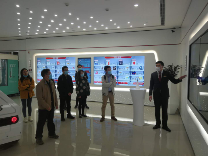 一进门,一台智能机器人和一辆服务概念车——小融未来号便吸引了大家。在行长赖莹和客户经理刘博文的陪同下,大家依次参观了网点的“5G+AI”区、暖心服务区和工银尊享区,该网点综合运用了105个场景和54项前沿科技。在“5G+AI”区的智能服务区域,全新应用的大额现金智能柜员机、远程协同智能柜员机、实时制卡智能柜员机和智能实物自提机,分别可以高效提供不同票面大额现金处理、远程坐席协同、客户新申请信用卡“立等可取”、外币现钞线上预约线下自提等服务。网点大堂、实体机器人之间,以及机器人与智能柜员机之间,实现了互联互通、分层调度,组成“机器人团队”共同为客户提供服务。参观中,老师和同学们亲身体验了各类设备的不同功能,大家也深刻地体会到充满科技感的银行服务。