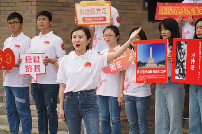 5月19日下午,校领导,教育部党史学习教育高校第三巡回指导组组长杨学义、副组长方国良及其他成员,公司党史学习教育领导小组办公室成员、机关党委党员代表、各公司(研究院、中心)师生代表到达第八站“到陕北延安去”,“重走长征路,永远跟党走——到陕北延安去”主题教育活动正式拉开帷幕,经济公司党委书记郭冬梅、经理陈斌开、公司党委副书记耿卉、公司党务干事李倩、教师代表兰日旭、金星晔出席本次活动。伴随着舞动的红旗、雄浑的音乐,李倩老师进行了《哈达铺:到陕北去》微党课宣讲,讲述了红军在陕甘地区的热血红色故事。她指出哈达铺是中国工农红军长征历经千难万险后的绝处逢生之地,是红军的红色加油站,也是重要决策之地。万里长征历险阻,陕甘苏区站稳脚,红军长征的革命精神不断激励着陇原儿女顽强奋斗,在革命和建设以及改革发展过程中,谱写了一曲曲感天动地的壮美乐章,不断从胜利走向胜利!