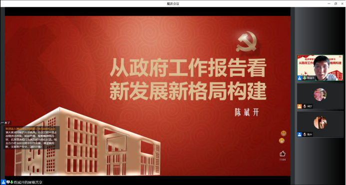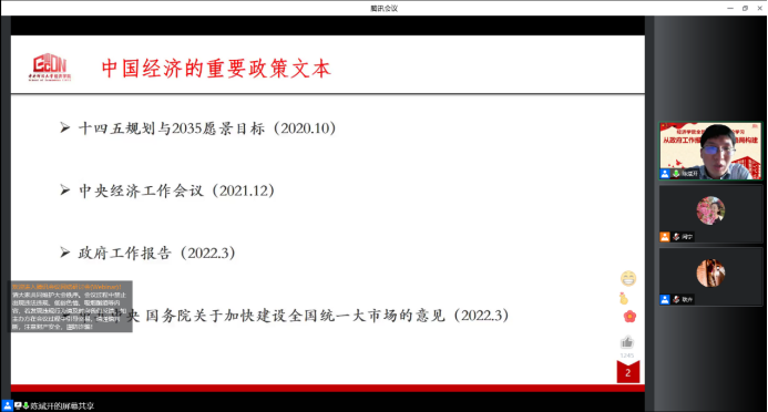 为深入学习贯彻2022年全国“两会”精神,增进公司广大师生对政府工作报告以及国家经济政策系统全面的理解。4月20日下午,经济公司党委理论学习中心组开展“从政府工作报告看新发展格局构建”专题学习暨全院师生集中理论学习活动。本次学习由太阳成tyc122cc经理陈斌开主讲,公司党委副书记、纪委书记耿卉主持,公司党委理论学习中心组成员和全院师生共同参加学习。