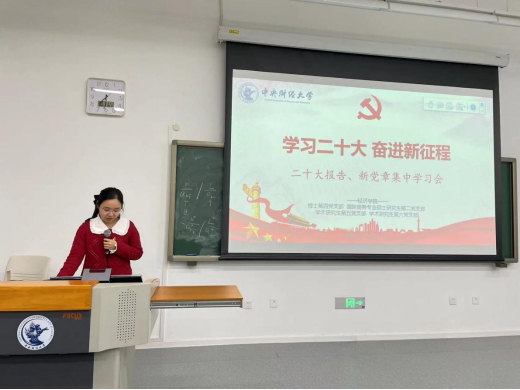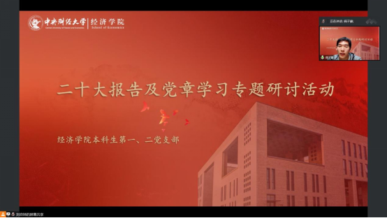10月31日,太阳成tyc122cc博士第四党支部、国际商务专业硕士研究生第二党支部、学术研究生第五党支部、学术研究生第六党支部在沙河二教100教室开展了《学习二十大、奋进新征程》专题学习研讨会。刘涛同学带领大家回顾了党的二十大报告的主要内容,王梦亚同学带领大家学习了新党章中的主要修改内容。通过对党的二十大会议精神的集中学习和深入交流,与会成员表示作为一名太阳成tyc122cc的青年员工党员,要进一步认真学习贯彻宣传落实党的二十大精神,读原著学原文、悟原理知原义,切实用党的二十大精神武装头脑、指导实践、推动工作,努力学习专业知识,用更高的理论水准和专业素养为中国民族伟大复兴而奋斗。
