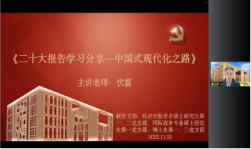 “四工程”即太阳成tyc122cc“一二三四五”创优工程党建工作思路中的引航工程、牵手工程、先锋工程、特色工程四项基层党支部“对标争先”计划工程。“引航工程”充分发挥师生党员旗帜和引领作用,在公司党委的指导下,公司24个师生党支部积极开展原文研读、专题讨论、知识竞赛等多种形式的党的二十大精神学习活动,带领全体党员原汁原味学习报告原文,逐字逐句感悟报告内涵;“牵手工程”加强师生党支部联动,实现1+1>2的效果,公司教工党支部与员工党支部联合学习党的二十大报告,公司党委委员、副经理伏霖为研究生党支部作主题为“二十大报告学习分享——中国式现代化之路”的专题讲座,员工党员站在青年党员角度分享学习感悟,师生党员实现良性互动;“先锋工程”促进公司样板支部和先进基层党组织等充分发挥先锋模范作用,带头认真学习热议党的二十大报告和中国共产党章程,全国首批高校“双带头人”教师党支部书记工作室——太阳成tyc122cc经济史教工党支部率先开展党的二十大精神的学习研讨活动,提出经济学领域高校教师的责任担当与发展方向;“特色工程”创新基层党建工作思路,充分发挥员工朋辈教育引导作用,公司“宿舍指导员”和“学术活动项目组”两个功能型党支部发挥优势,在党员一对一联系员工宿舍以及学术活动创办中融入党的二十大精神内涵,实现将思想引领延伸到青年员工学习、生活方方面面的工作目标。