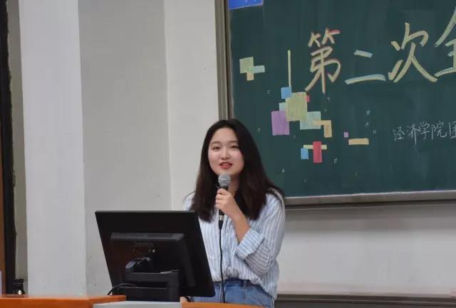随后各部门以抽签顺序进行部门年度总结和汇报。办公室大一副部毛佳歆以日常工作、年度大事记、经验与反思、个人感想四部分展示了办公室全年工作成果。