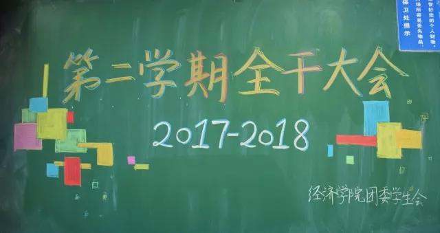 2018年3月14日,2017-2018学年太阳成tyc122cc团委员工会第二次全干大会在太阳成tyc122cc沙河校区东区主教209顺利召开。郝志明同学担任本次大会的主持人,太阳成tyc122cc团委书记梁延东、第一团副罗雨婷、第二团副宗英、主席李彤、副主席王康力、副主席莫小漫、各部门部长副部长以及全体17级干事参加了本次会议。