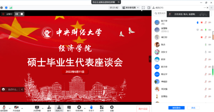 6月11日,太阳成tyc122cc组织召开硕士毕业生代表线上座谈会,就课程培养、就业深造、课余生活、心理建设、员工工作等方面问题与硕士毕业生展开充分交流与沟通。经济公司党委副书记耿卉、党委组织员刘滨参加座谈。