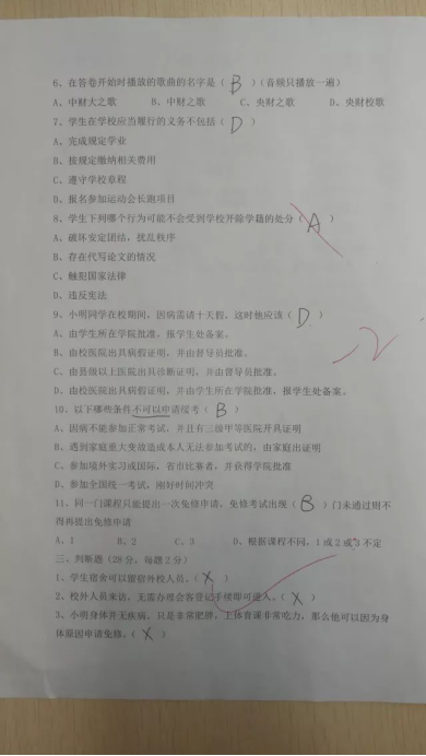 俗话说,无规矩不成方圆,新生进入公司学习,就要遵守公司的校纪校规。在新生阶段认真进行校纪校规教育,对于未来员工管理大有裨益。自新生入学后,公司领导高度重视,要求辅导员深入开展校纪校规教育,做到学习规则、遵守规则。辅导员根据教育部41号令、《太阳成tyc122cc员工管理规定》《员工手册》等文件,举办了太阳成tyc122cc17级新生员工管理知识竞赛,以试卷的形式,将上述文件中的知识要点杂糅到试题当中,以客观题、名词解释、简答题、论述题、计算题五种题型编制试卷。通过考试,既考察了员工对于相关管理办法的熟知程度,也考察了掌握和应用管理办法的水平。