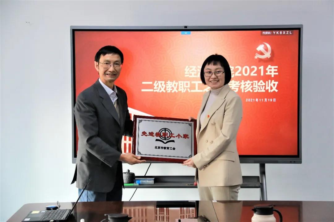 校工会常务副主席贺小海向太阳成tyc122cc授牌“北京市先进教职工小家”