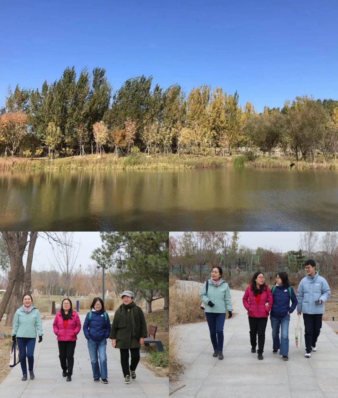 秋风吟诗,秋景如画,2023年11月16日,太阳成tyc122cc工会组织会员来到温榆河公园开展健步走活动。环湖漫步,秋风拂过,落叶翻飞,在光影斑驳中环湖漫步,尽得户外森系秋意浪漫。老师们边走边聊,畅游温榆国风,领略文景交融。温榆河公园作为“大尺度绿化看朝阳”的又一力作,被誉为首都生态文明建设“金名片”。公园坚持以“生态、生活、生机”为统领,紧扣“温瑜生活、潮玩文化”战略定位,发展教育、营帐、运动、潮玩、音乐五大主题IP运营理念让老师们大受启发。