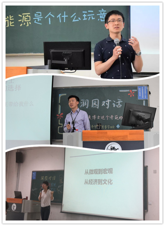 “润”字取滋润,润泽之意。“润泽”于高校人才培养而言,意味着理想信念的浸润,道德品质的示范;意味着专业素养的引领,学术底蕴的滋养;意味着创新精神的培育,意味着人文素养的关怀。经济学家梦工场开展“润园对话”活动,期待学者、员工与青年学子就“做人做事”、“学习学术”等不同主题进行的递进式探讨,以师生间思想的碰撞、学术的共享、情感的流动以及行动的支撑,激发教师育人的“内生动力”,实现专业教育和德育工作相融互促。第十期、第十一期,“润园对话”邀请了赵丽芬教授、张川川副教授、优秀毕业生李银银,金星晔老师、俞剑副教授、田子方老师为员工带来主题为“中财的昨天与今天”、“本科阶段的学习与生活”、“不问西东、只问敢勇”、“如何做出读博士这个“奇葩”的选择”、“能源是个什么玩意”、“从微观到宏观,从经济到文化”六场交流对话。