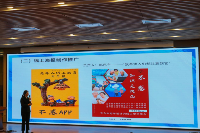 在团队展示环节,各个队伍大展才华、侃侃而谈,精炼地介绍了各自项目的设计背景、策划方案和营销成果。“中老年用户线上学习APP”、“外卖无接触配送”、“个性健康养老”、“高校员工交互”、“线上教育”、“智慧养老”、“宅经济”、“云旅行”,每一个项目都对“后疫情时代”的主题进行了深入探索,有很强的现实意义。各队伍分工合作,既结合翔实数据和社会实情充分分析了项目的可行性,又图文并茂地介绍了项目取得的成果,淋漓尽致地表现出了参赛同学们深厚的经济学学识和卓越的市场调查、策划营销能力,秀出了青年领袖的风采。
