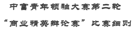 3.每场比赛包含两支队伍,分别为正方队伍A队及反方队伍B队,每队选出一名首席经济学家(不一定是队长)以及确定队员A1-A4及B1-B4,并填写队员安排表。(队员安排表会在抽签结束之后于中富第二轮队长群发布,若因队员安排表的自行变动造成优秀个人的评选出错,组委会概不承担相应责任)