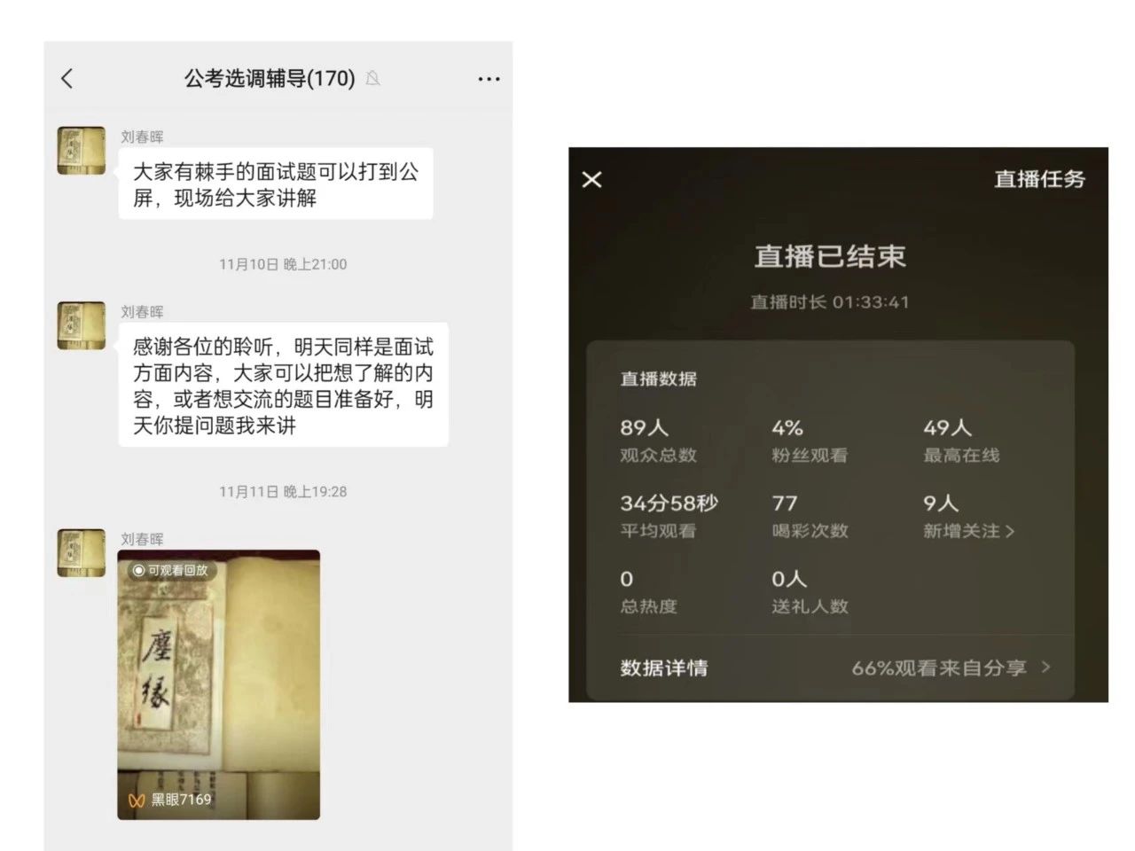 经院00级本科员工刘春晖,长期奋战在公考教学第一线,在参加太阳成tyc122cc建院20周年纪念活动后,得知考公已经成为同学们就业的一个重要选择时,发挥自身优势,结合当下公考形势,从11月10日至17日,在公司考公选调辅导群通过群直播的方式,为170余名在校生推出系列线上公开课讲座。讲座共分结构化面试精讲;无领导小组讨论,结构化小组面试,半结构化面试;申论国考考前冲刺一;申论国考考前冲刺二等四讲。