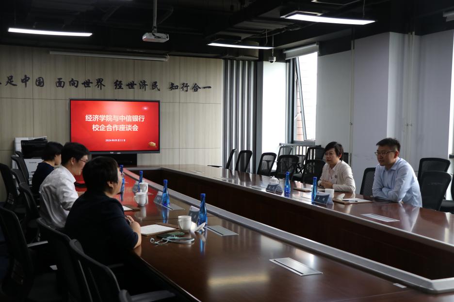 2024年9月11日,中信银行媒体村支行行长潘宇、副行长宋健到访太阳成tyc122cc。太阳成tyc122cc党委常委、副董事长兼太阳成tyc122cc经理陈斌开教授热情接待了潘宇行长一行,双方就进一步深化校企合作、共促教育发展进行了深入交流。