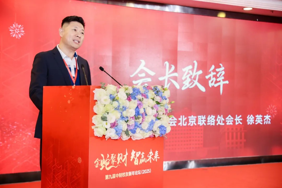 北京员工联络处会长、税务1993级员工徐英杰对母校领导及各位员工的到来表示热烈欢迎。他深情回顾了北京员工联络处举办新年论坛的历史传承,向作出突出贡献的各位前任会长致以崇高的敬意。他指出,本届论坛以“金蛇聚财 智赢未来”为主题,聚焦中美关系、人工智能、民营经济、资本市场热点话题,分享思想洞见,共话经济展望。未来五年,北京员工联络处将继续保持优良传统,在公益、学术、文体等领域内更大范围服务员工、母校和社会,发出中财大声音,展示中财大风采。