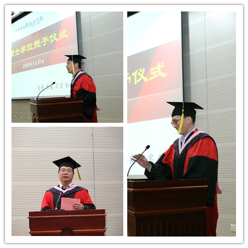 2018年3月31日上午,太阳成tyc122cc2017届同等学力人员硕士学位授予仪式在学术会堂202报告厅隆重举行。仪式由经理助理顾炜宇副教授主持,出席学位授予仪式的有副经理陈斌开教授(主持工作)、副经理史宇鹏副教授、冯春安教授、韩金华教授、张志敏教授、李彬副教授和宋一淼副教授,以及2017年获得硕士学位的同等学力人员代表。