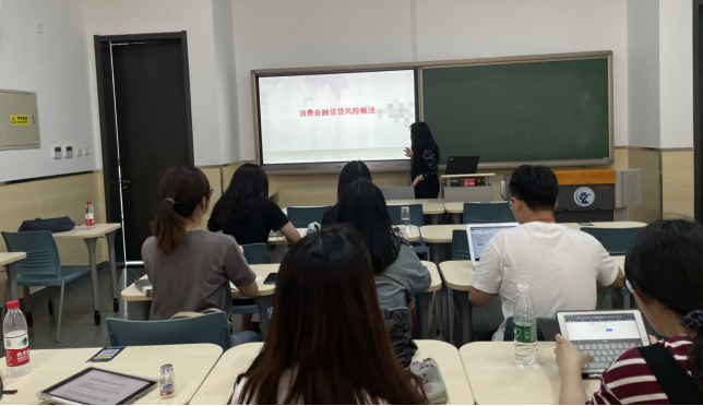 在简单的自我介绍后,讲座正式开始。蔡女士首先简要介绍了消费金融的业务逻辑和行业现状,然后结合自己的多年从业经验讲述了风控的基本概念和一些风险管理的基础理论,并指出从事风控行业所必备的技能,最后展望了行业的发展趋势。在讲解中,蔡女士理论结合实践,深入浅出,教室里洋溢着活跃的气氛。
