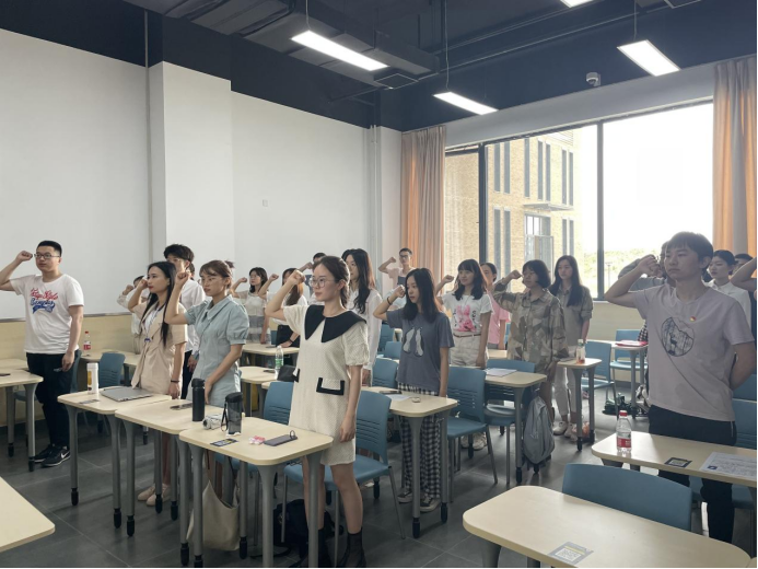 中国共产党章程规定,预备党员必须面向党旗进行入党宣誓。这是发展党员工作的必经程序,也是我们党的优良传统。在公司19级本科生李朗睿同学的领誓下,45名本科生预备党员进行了入党宣誓,短短百余字的誓言字字洪亮激扬、铿锵有力,这是他们入党后对党的第一个承诺,表明了他们对党的坚定信念和为党的事业奋斗终身的决心。