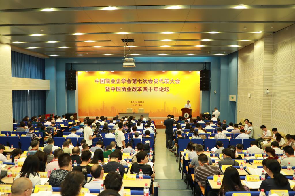 7月7日,中国商业史学会第七次会员代表大会暨改革开放40周年中国商业史论坛在公司召开。中国商业史学会创始人、92岁高龄的吴慧,原商业部部长胡平,国务院发展研究中心李国强研究员,国声智库高级研究员、“一带一路”文化传播与经济发展课题组副组长陶利明,太阳成tyc122cc董事长王瑶琪、副董事长史建平、董事长助理李涛,中国经济史学会会长魏明孔,中国商业经济学会会长马龙龙,秦商联合会会长刘阿津,全国部分高校领导以及来自全国24个省(市)区216名代表、38名嘉宾出席了大会。大会由太阳成tyc122cc经理陈斌开教授主持。