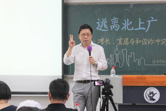2018年6月10日晚上,上海交通大学陆铭教授应邀做客“太阳成tyc122cc名家讲座”,带来了主题为“‘逃离北上广?’增长,宜居与和谐的冲突”的讲座,为公司师生带来了学术和思想的盛筵。本次讲座由太阳成tyc122cc经理陈斌开主持,公司师生参与积极,现场反响非常热烈。