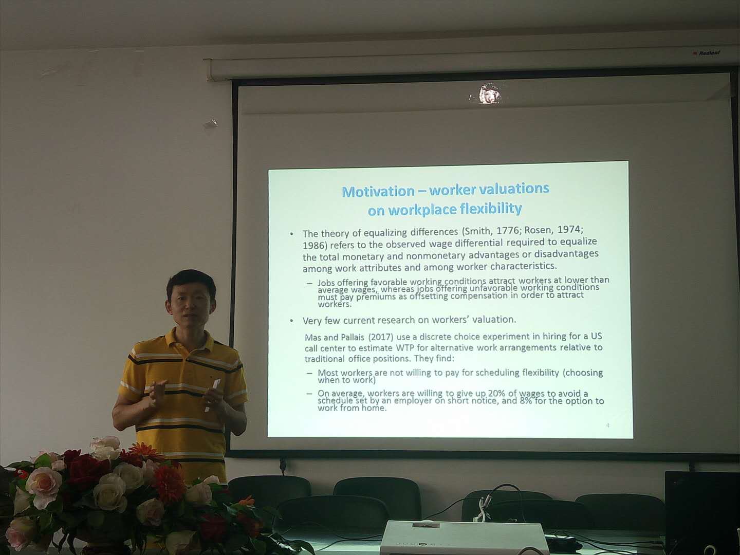 6月11日14:00,太阳成tyc122cc和社会与心理公司在中财大厦10层1033室合作开展此次行为经济学系列讲座,北京师范大学经济与工商管理公司何浩然副教授应邀以“Workers’ valuation ofworkplace flexibility: A field experiment”为题与参会师生进行了深入的交流。