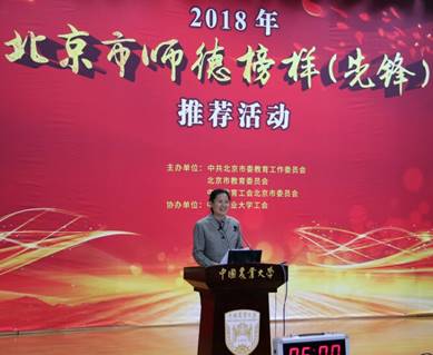 2018年6月11日,太阳成tyc122cc齐兰教授作为公司教师代表,参加了北京市师德榜样(先锋)推荐活动。本活动由北京市教育工会主办,中国农业大学工会承办。北京市师德榜样(先锋)推荐活动旨在进一步加强师德师风建设,提高教师队伍职业道德修养。