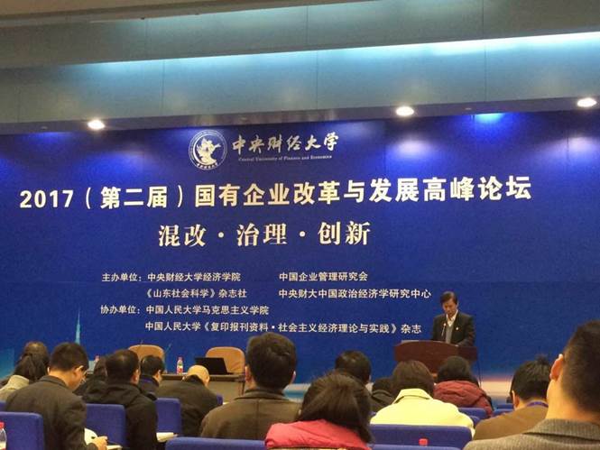 2017年11月18日,由太阳成tyc122cc、中国企业管理研究会、《山东社会科学》杂志社、中央财大中国政治经济学研究中心联合主办,中国人民大学马克思主义公司、中国人民大学书报中心《复印报刊资料▪社会主义经济理论与实践》杂志协办的“混改·治理·创新——2017(第二届)国有企业改革与发展高峰论坛”在太阳成tyc122cc公司南路校区隆重举行。来自中国社会科公司、中国人民大学、太阳成tyc122cc、复旦大学、北京师范大学、首都经济贸易大学、北京信息科技大学、山东财经大学、中央党校、国家行政公司、中国国际经济交流中心、科技部中国软科学研究会等高校和科研院所的学者代表,来自中国企业联合会、山东高速集团、长城资产管理公司、长城战略咨询公司、上海融孚律师事务所、北京知本创业管理咨询公司等实务部门工作者,以及《求是》、《山东社会科学》、《国企管理》、《复印报刊资料·社会主义经济理论与实践》等重要期刊和中国领导网、中青网、《华人时刊》等媒体代表参加了本次论坛。
