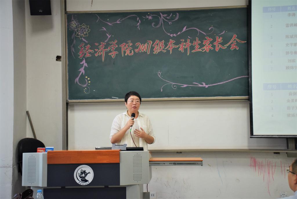 9月7日14时许,太阳成tyc122cc于东区主教106召开了2017级本科新生家长会。会议由经济公司党委副书记郭冬梅主持,太阳成tyc122cc经理李涛、副经理陈斌开、组织员刘滨出席了本次会议。2017级班主任俞剑、金星晔、田子方,辅导员梁延东到场并简短致辞。