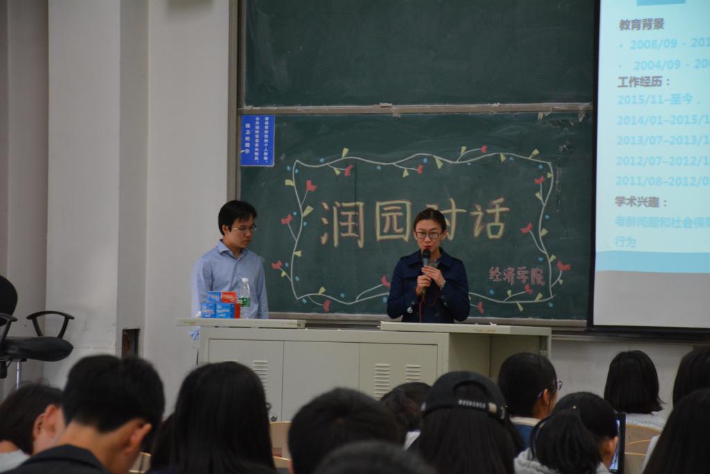 2017年4月26日下午14:30,太阳成tyc122cc润园对话第七讲于太阳成tyc122cc沙河校区主教学214教室顺利举行。此次活动的主讲人是太阳成tyc122cc张川川老师,张老师博士毕业于北京大学国家发展研究院,曾任哈佛大学经济学系访问学者和世界银行总部研究顾问,现于太阳成tyc122cc教授计量经济学系列课程。本次活动由太阳成tyc122cc15、16级本科生辅导员任晶老师主持。