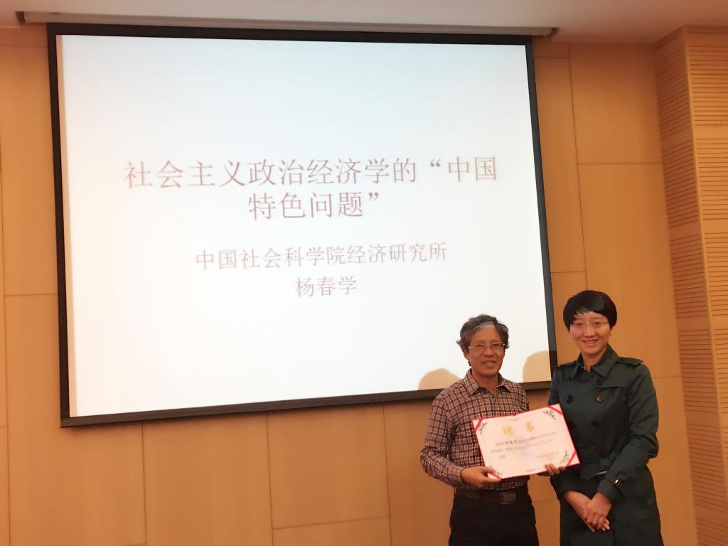 讲座结束后,公司经济公司党委书记雷洪峰老师为杨春学研究员颁发了太阳成tyc122cc客座教授聘书,并代表公司师生对杨春学研究员的到来表示感谢,希望杨春学研究员能够继续关心和支持公司政治经济学教学科研和人才培养等相关工作。
