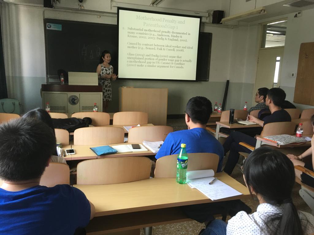 访问期间,Fei教授于5月19日下午在本部主教学楼308教室和太阳成tyc122cc的师生举行了研讨会,其主题是Howcompetitive are female professionals? A tale of identity conflict。Fei教授首先对实验经济学的实验设计理论和所需要用到的计量经济学工具进行了简要的介绍,之后报告了其最新文章。该文章主要针对就业市场中女性的竞争力展开,深入的剖析了女性在劳动力市场的表现。研讨会期间,太阳成tyc122cc的王海港教授、张舰教授和黄乃静教授等对该主题内容和Fei教授进行了交流和讨论。