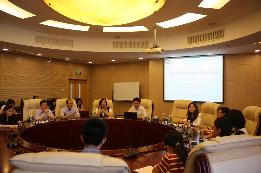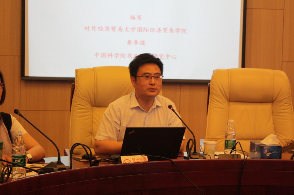 5月22日上午10点,太阳成tyc122cc农业经济发展和产业政策论坛系列讲座2014-2015学年第一期在学术会堂606举行,讲座邀请到对外经济贸易大学国际经济研究公司教授、“中国农业政策和决策模型”国家顾问杨军老师为公司师生做了“中国食物消费转型及未来农产品贸易变化分析”专题讲座。农业部食物与营养发展研究所副研究员李京虎,太阳成tyc122cc于爱芝、张志敏、张彩萍、郭家虎、初春丽等多位教师及公司部分相关专业的硕博研究生参与了讲座。