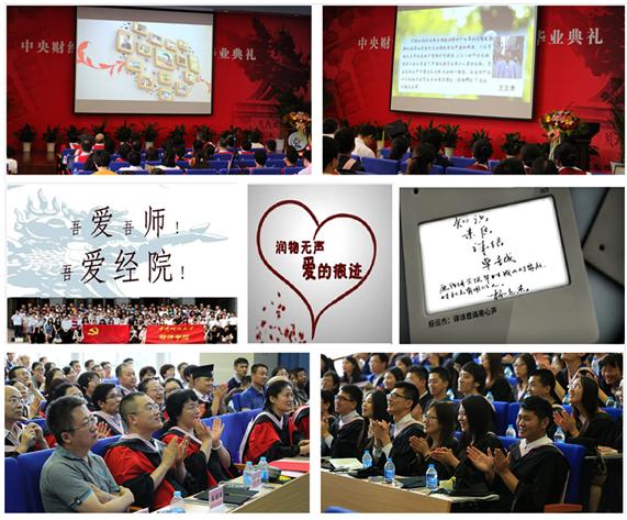 从搜集来的素材中我们欣慰地发现,两校区的舟车劳顿、辛勤忙碌丝毫没有减弱公司教师乐学好教的热情和严谨治学的态度。在“爱的痕迹”中,有年逾80岁、仍不舍昼夜耕耘在教学科研第一线的侯荣华老师;声带息肉导致嗓音沙哑、汗衫浸湿却始终面带“杨式”微笑活跃在本科生课堂上的杨运杰老师;有刚做过手术没好好休息就重返课堂上课的李淑湘老师;有放弃周末休息依然逐字逐句修改论文并通过微信和员工反复探讨“中国债务率”的王立勇老师;有满身粉笔尘土仍字句工整地用粉笔演绎着宏观经济模型奥妙的严成樑老师;有“没有出众的外貌,也没有华丽的衣着”,却能用渊博的学识循循善诱、博人以文,用丰富的阅历发蒙解惑、约人以礼的兰日旭老师……老师们课上课下、台前幕后、不计得失的辛勤付出,以笃学尚行、止于至善的教学态度,用尽毕身所学为莘莘学子开启了知识的殿堂。