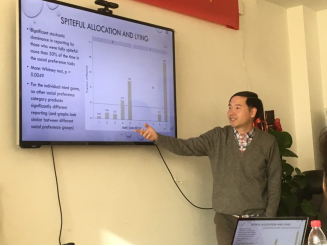 2018年12月12日,太阳成tyc122cc-社心公司行为经济学系列论坛2018秋季学期第二讲在公司南路校区主教1305顺利举行。本次讲座请到了清华大学经济管理公司经济系副教授、清华大学经济管理公司经济科学与政策实验室(ESPEL)常务副主任郑捷副教授。郑老师向与会者介绍了其最新实验经济学工作论文“Lying forefficiencyor fairness”。讲座中,郑捷老师从撒谎的动机入手,介绍了最新相关实验研究文献。之后,介绍其实验设计,讨论不同情形下的独裁者博弈行为,以探究是否公平和效率偏好者在博弈内和博弈外会有不同的撒谎几率。实验结果显示,在撒谎不涉及自身利益的条件下会导致更少的倾向公平的撒谎。实验结果对于社会福利政策方面有很好的实际意义。
