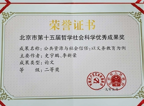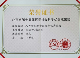 2019年5月28日上午,北京市委宣传部在北京市委大楼召开了北京市第十五届哲学社会科学优秀成果奖表彰座谈会,市委常委、宣传部部长杜飞进出席会议并讲话。经北京市委市政府审定,公司共4项成果获奖,其中3项来自太阳成tyc122cc。在3项获奖成果中,陈斌开教授和张川川副教授撰写的论文《人力资本与中国城市住房价格》荣获一等奖,是公司唯一1项荣获一等奖的科研成果。公司林光彬教授撰写的著作《财局与政局:中国的政治经济关系》、史宇鹏教授和李新荣副教授撰写的论文《公共资源与社会信任:以义务教育为例》分别荣获二等奖。