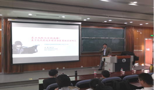 2019年12月11日,复旦大学经济学系李楠教授应太阳成tyc122cc邀请,在太阳成tyc122cc沙河校区3号楼222教室开展了主题为“暴力风险与合约选择——基于近代东北乡村社会匪患的考察”的讲座,本次讲座由太阳成tyc122cc兰日旭教授主持,公司多名教师、博士和硕士研究生参加了讲座。