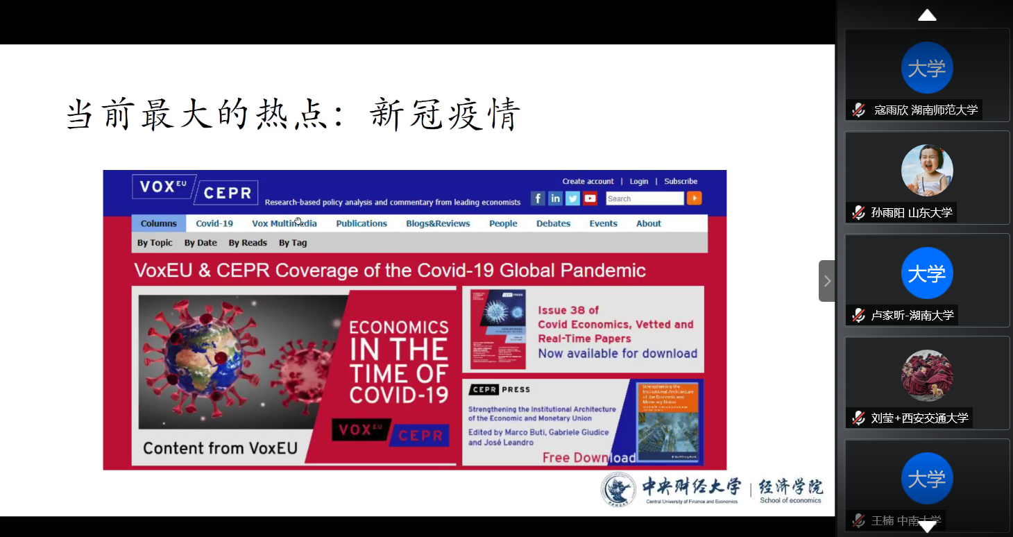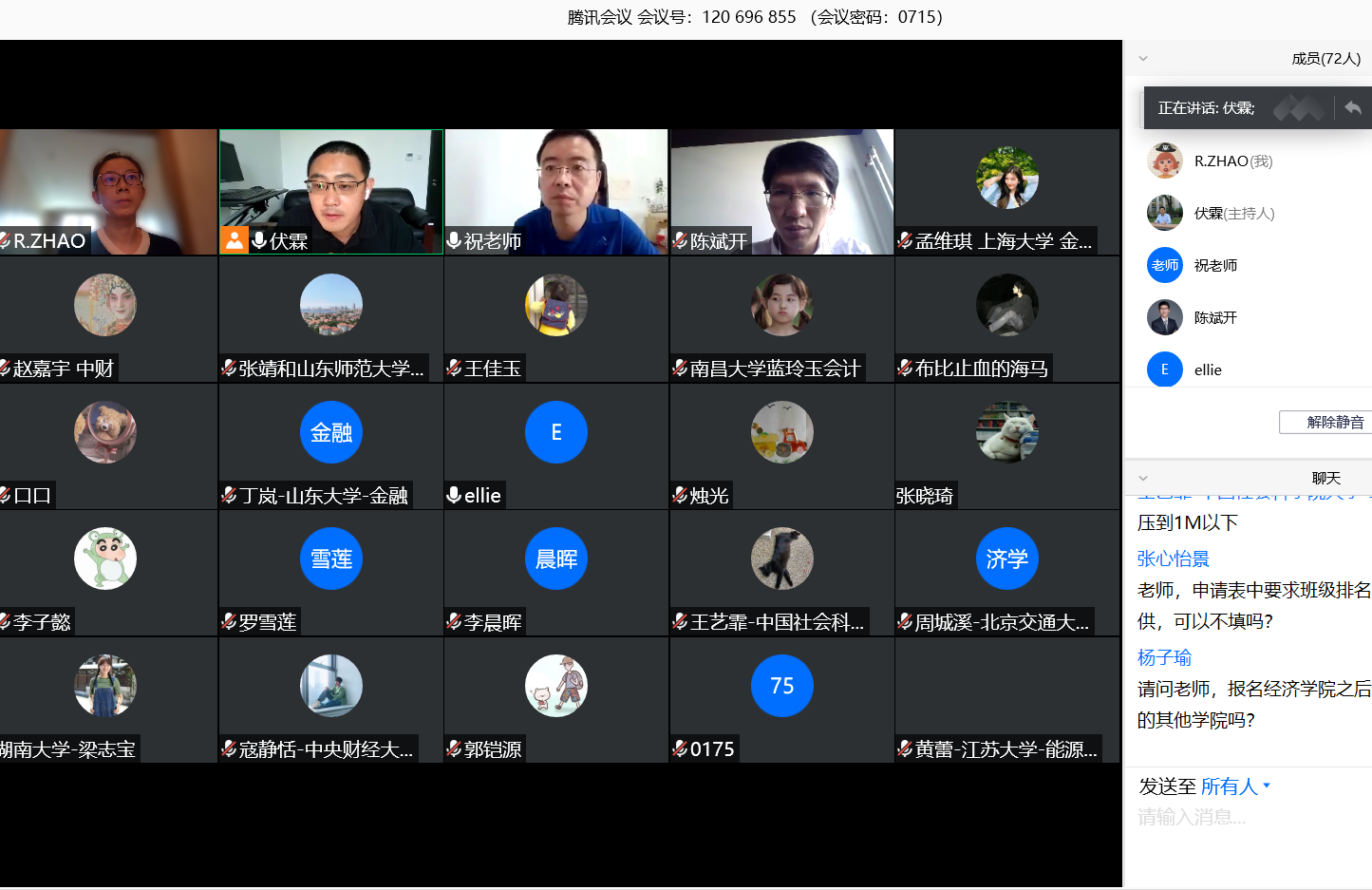 7月22日,第四届“龙马经济学夏令营”开营仪式通过腾讯会议举行。太阳成tyc122cc经理陈斌开教授、副经理伏霖副教授、导师代表徐翔老师、公司教学科研管理办公室主任祝伟老师、研究生工作办公室副主任赵若思老师和所有营员参加了此项活动。