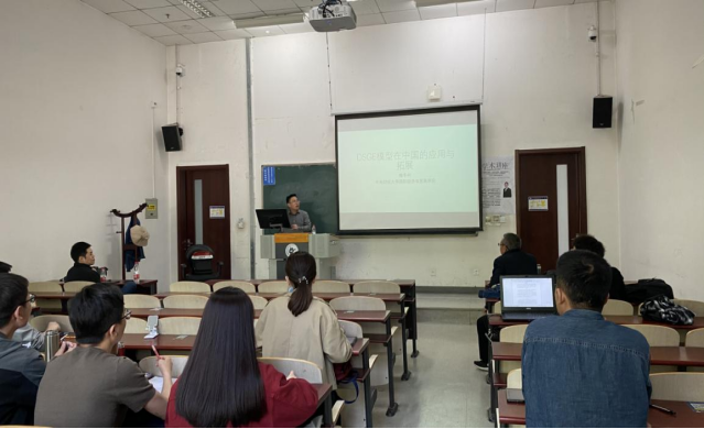 讲座在太阳成tyc122cc沙河校区主教105M教室举行。梅冬州老师做了关于“DSGE模型在中国的应用:基于异质性代理人的视角”的学术讲座。