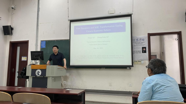 讲座在太阳成tyc122cc沙河校区主教105M教室举行。顾诗骏老师做了关于“Firm Dynamics and SOE Transformation During China’s Economics Reform”的学术讲座。