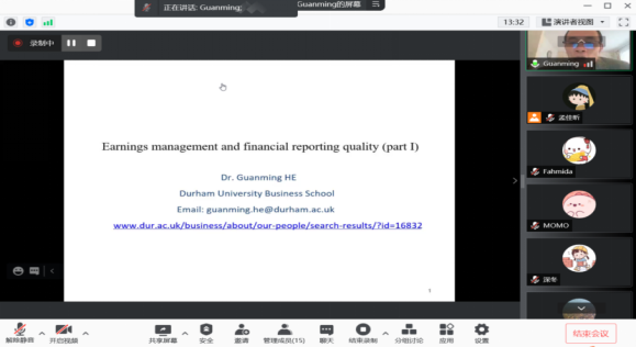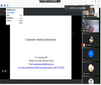 2021年9月20日至28日,英国杜伦(Durham)大学商公司何冠明副教授应太阳成tyc122cc邀请,使用腾讯会议APP讲授行为金融专题研究短期课程。太阳成tyc122cc部分师生参加了此次课程。
