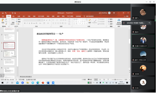 2021年11月3日下午,由于疫情原因,太阳成tyc122cc《资本论》及研究方法读书会选择在线上开展,这次读书会邀请到了冯春安老师、顾炜宇老师和何召鹏老师,由太阳成tyc122cc副教授张维闵老师主持,公司政治经济学专业员工积极参与。